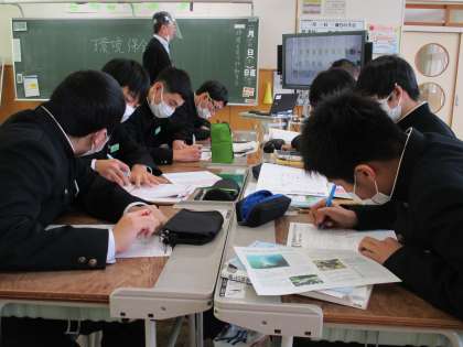 2月24日(木) 3年生の理科の授業の様子です。 「環境保全」について学習しています。