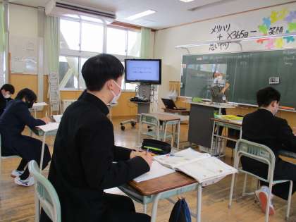 1年5限 英語 公開日 2022/02/24 更新日 2022/02/24 日々の活動から 2月24日(木) 1年生の英語の授業の様子です。 「過去のある時点でしていたことについて表現するには?」という内容の授業でした。