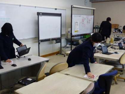 具体的に、コンピュータ室、家庭科室、美術室を清掃しました。