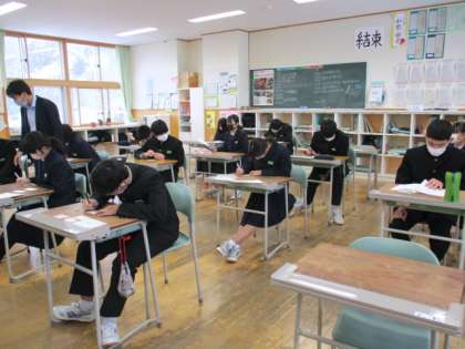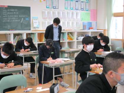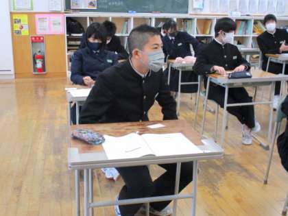2月25日(金) 3年生の社会の授業の様子です。 入試予想問題に取り組みました。