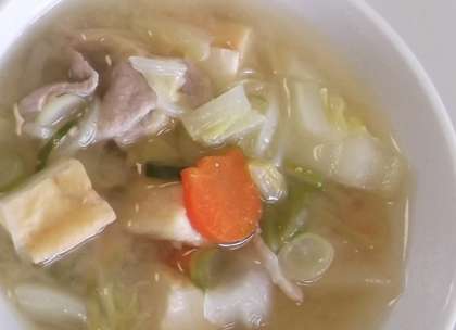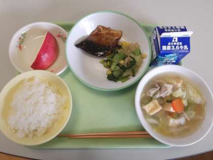 今日は「豚汁」の中に《くまの顔》の型をした〈にんじん〉が1つ入っていました。