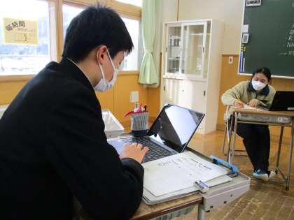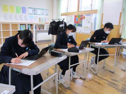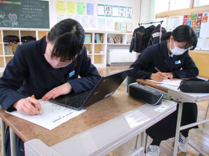 2年1限 「総合的な学習の時間(楡の木タイム)」 公開日 2022/03/01 更新日 2022/03/01 日々の活動から 3月1日(火) 2年生の「総合的な学習の時間(楡の木タイム)」の様子です。 修学旅行事前学習として、大阪での活動内容について調べています。