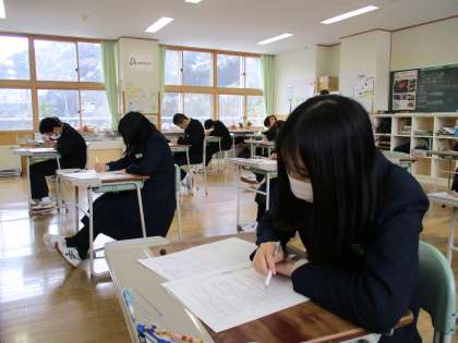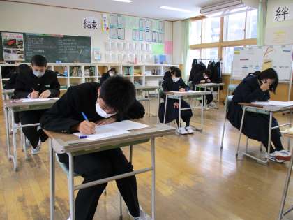 3年4限 英語 確認テスト 公開日 2022/03/01 更新日 2022/03/01 日々の活動から 3月1日(火) 3年生の英語の確認テストの様子です。 午前中最後の教科です。 お腹がすいて頭の回転が…