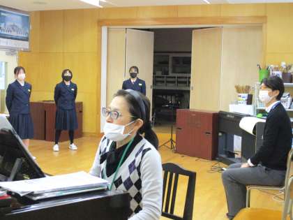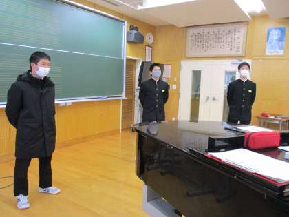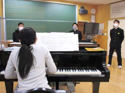 3月1日(火) 1年生の音楽の授業の様子です。 卒業式で歌う「遙かな道へ」の練習をしました。