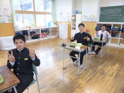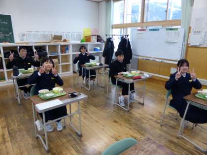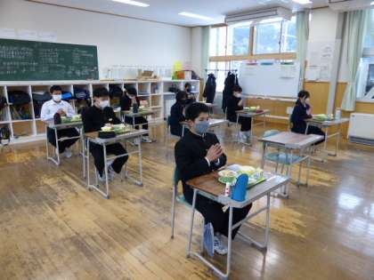 3月1日(火) 1年生の給食風景です。 運よく「今から」というタイミングで撮影できました。