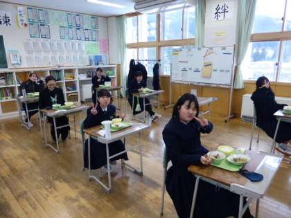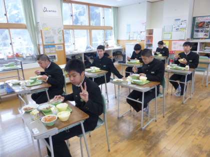 3年 給食風景 公開日 2022/03/01 更新日 2022/03/01 日々の活動から 3月1日(火) 3年生の給食風景です。 放送当番の生徒もいました。 広報実践部では、卒業生をお祝いする一貫として「3年生のリクエスト特集」を行っています。 次回が最終回です。 3年生のみなさんは、自分が希望する曲が放送されましたか?