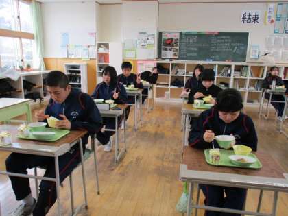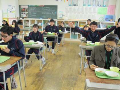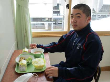 3月2日(水) 3年生の給食風景です。 放送当番の生徒もいました。 あと6回になりました。給食は…
