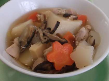今日は「大和煮」の中に『さくら』の《花型》の〈にんじん〉や『もも』の《花型》の〈こんにゃく〉が入っていました。