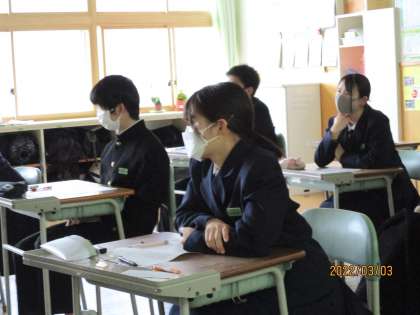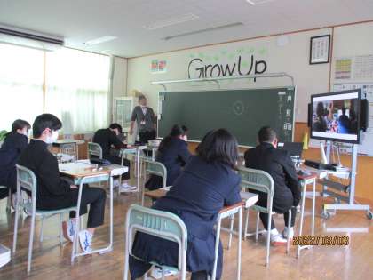 3月3日(木) 3年生の理科の授業の様子です。 映像を見て学習しました。