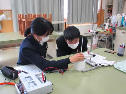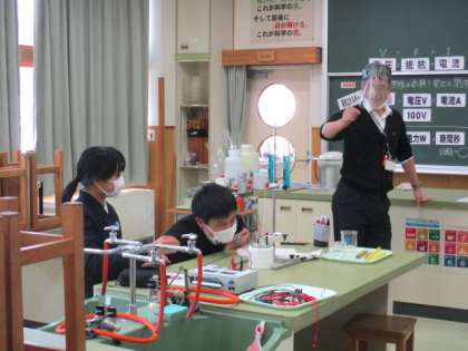 2年3限 理科 公開日 2022/03/04 更新日 2022/03/04 日々の活動から 3月4日(金) 2年生の理科の授業の様子です。 「電熱線の発熱と電力の関係について調べよう」という内容の授業でした。