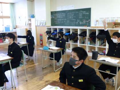 1年4限 道徳 公開日 2022/03/04 更新日 2022/03/04 日々の活動から 3月4日(金) 1年生の道徳の授業の様子です。 「思いやりの日々」という資料を読んで、本当の「思いやり」について考えました。