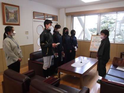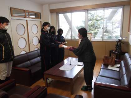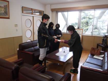 本日放課後、富山ユネスコ協会の水上副会長が来校され、今年度回収した「書きそんじはがき」を生徒会執行部からお渡ししました。