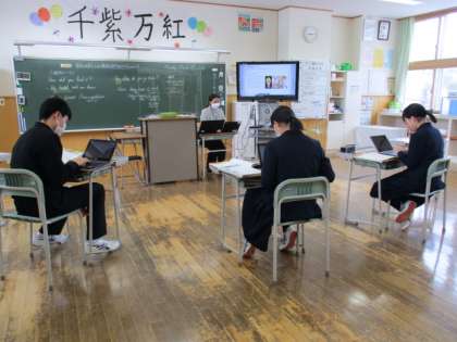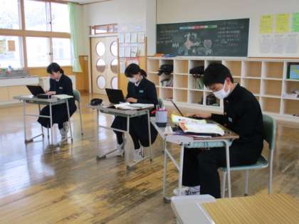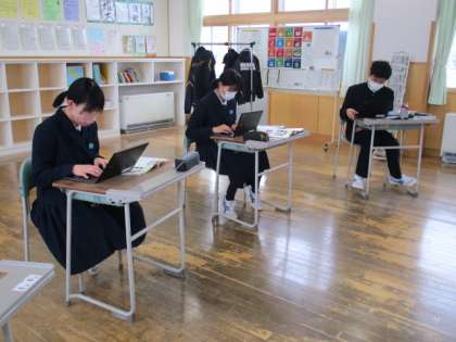 自分の町のお勧めの場所を英語で紹介するための記事をタブレットを使って作っていました。