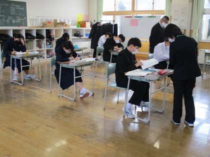 3月7日(月) 1年生の数学の授業の様子です。 これまでの復習を行いました。