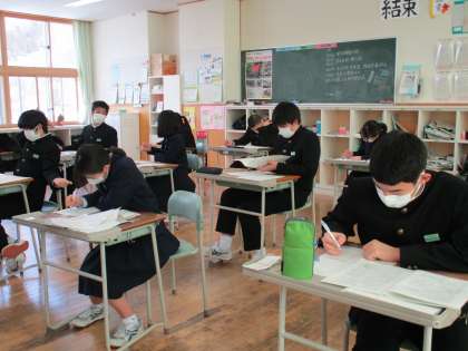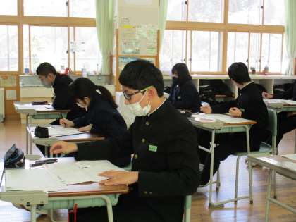 3月7日(月) 3年生の社会の授業の様子です。 入試予想問題に取り組みました。