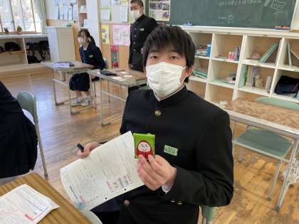 3年6限 学級活動 公開日 2022/03/07 更新日 2022/03/07 日々の活動から 3月7日(月) 明日、県立高校一般入試に臨む生徒たちに向けて、学校残留生から手紙の入ったお守りと激励の言葉がありました。 県立一般入試に臨むみなさんを応援しています。 ベストを尽くせ!