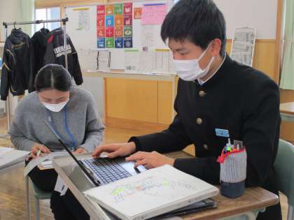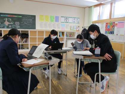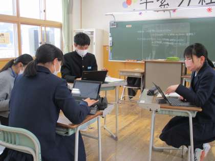2年1限 「総合的な学習の時間(楡の木タイム)」 公開日 2022/03/08 更新日 2022/03/08 日々の活動から 3月8日(火) 2年生の「総合的な学習の時間(楡の木タイム)」の様子です。 新年度の修学旅行に向けて準備を進めています。