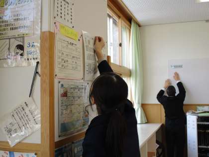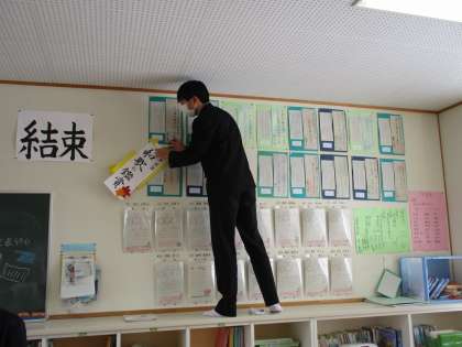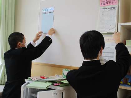 3月8日(火) 3年生の学級活動の様子です。 掲示物を外したり、環境を整えたりしました。