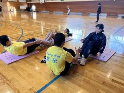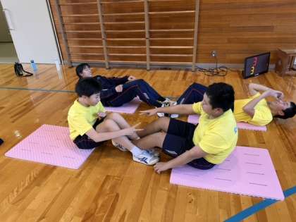 ボート部 公開日 2022/03/08 更新日 2022/03/08 日々の活動から 3月8日(火) ボート部の活動の様子です。 短い時間でしたが、集中して取り組んでいました。 じゃんけんを織り交ぜた腹筋メニューをし、楽しみながら体幹を鍛えました。