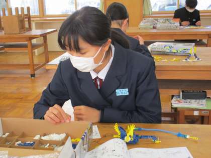 2年2限 技術 公開日 2022/03/09 更新日 2022/03/09 日々の活動から 3月9日(水) 2年生の技術の授業の様子です。 完成したロボットを分解して、新しいロボットを製作していました。