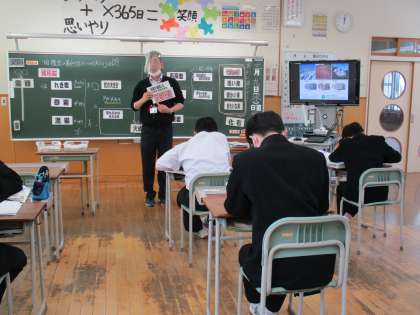 3月9日(水) 1年生の理科の授業の様子です。 「堆積岩の見分け方について考えよう」という内容の授業でした。