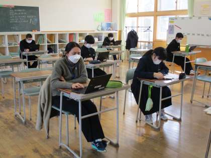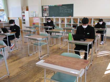 タブレットを使ったり、問題を解いたりして自習をしていました。