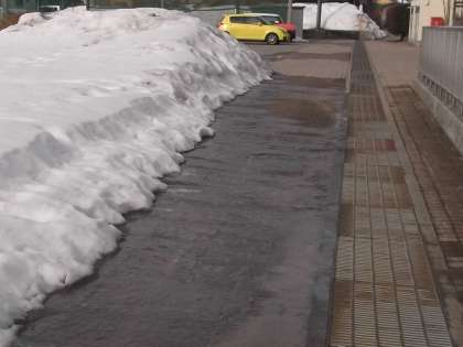 3月10日(木) 今日は、1日よい天気となる予報となっています。 朝は、そのため冷え込んで雪時水が凍っていました。
