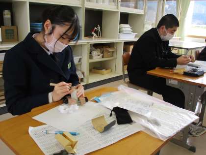 3年4限 美術 公開日 2022/03/10 更新日 2022/03/10 日々の活動から 3月10日(木) 3年生の美術の授業の様子です。 美術は本来授業がなかった教科なのですが、教科担当者が特別に1時間授業をしてくれました。 思い出に残る卒業作品の制作をしました。