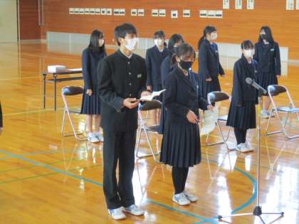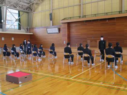 3年1限 卒業式練習 公開日 2022/03/11 更新日 2022/03/11 日々の活動から 3月11日(金) 3年生の卒業式に関する各行事の練習の様子です。 卒業証書授与の練習、答辞の練習、同窓会入会式の練習等々 3月15日(火)の本番に向けてがんばっています。