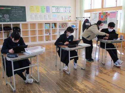 3月11日(金) 2年生の道徳の授業の様子です。 クロムブックを使った道徳?