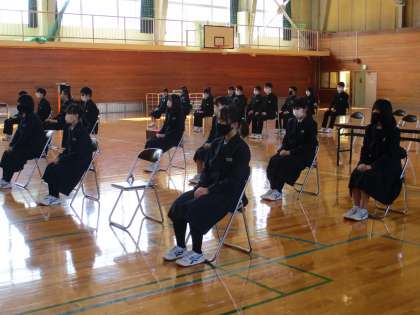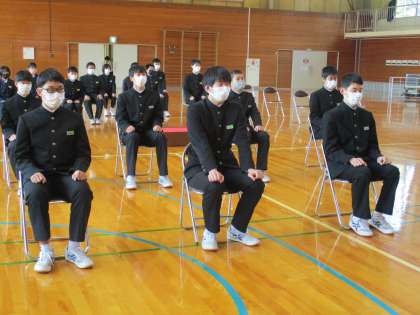 4限 卒業式 全体練習 公開日 2022/03/11 更新日 2022/03/11 日々の活動から 3月11日(金) 本日4限、卒業式の全体練習をしました。 式の流れの中で、一つ一つの動作を確認しました。 来週は予行練習です。 この週末に頭の中で復習しておきましょう!