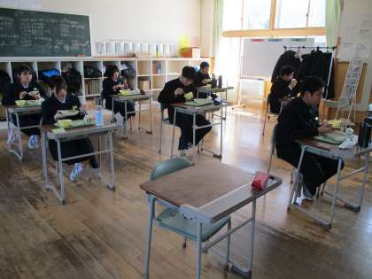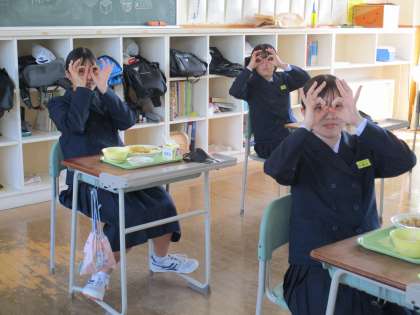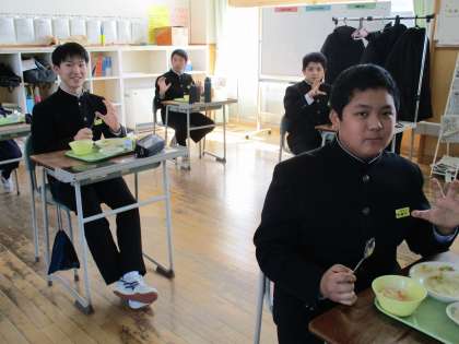 3月11日(金) 1年生の今日の給食の様子です。 女子は、何か探しいるのかな…?