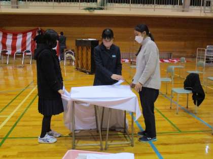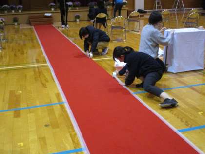 1・2年 5・6限 卒業式準備 公開日 2022/03/14 更新日 2022/03/14 日々の活動から 小学校の先生方も準備のお手伝いに来てくださいました。 ありがとうございました。 片付けの際には、中学校もお手伝いさせていただきます。
