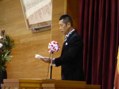 鍋田校長は、「プラス思考」「ポジティブシンキング」「前向きに」という話を卒業生に式辞で話しました。