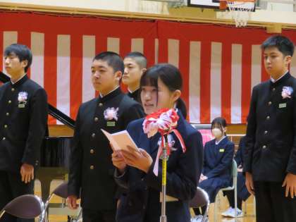 卒業生の代表生徒が、3年間を振り返り「答辞」を述べました。