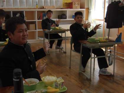 3月16日(水) 1年生の給食風景です。 みんなで息を合わせることは、楽しいですね!