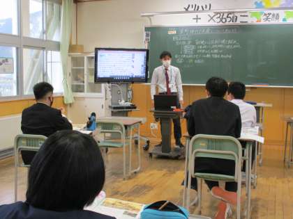 3月17日(木) 1年生の社会の授業の様子です。 「室町時代の民衆について知ろう」という内容の授業でした。