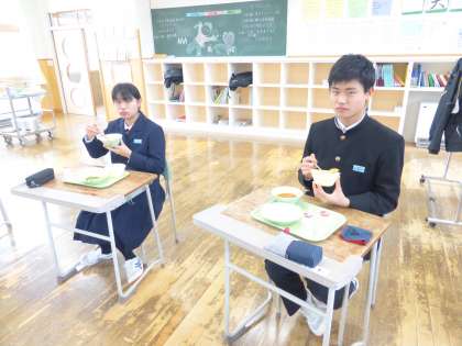 3月17日(木) 2年生の給食風景です。