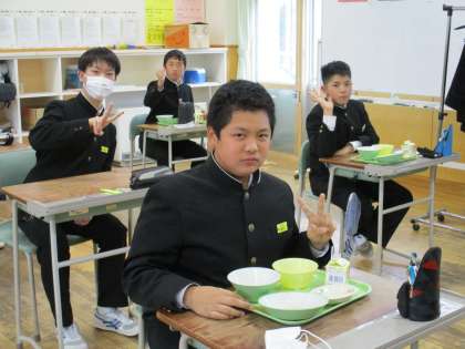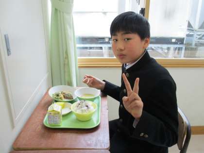 3月18日(金) 1年生の給食風景です。 放送当番の生徒もいました。