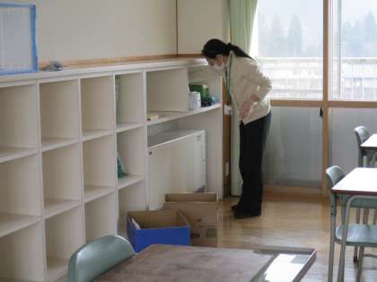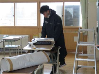 3年生教室の大掃除の様子です。 学年担当教員が、次の学年に教室を引き継げるように最終点検をしました。