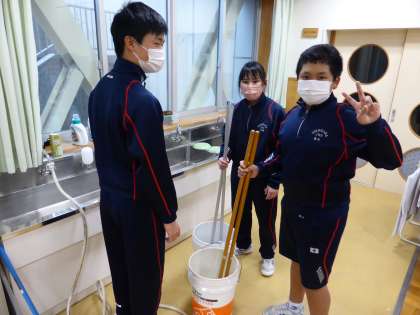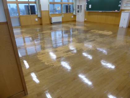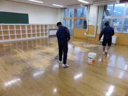 3月18日(金) 大掃除の後で、各教室のワックスがけをしました。 片付けまできっちりとやってくれました。