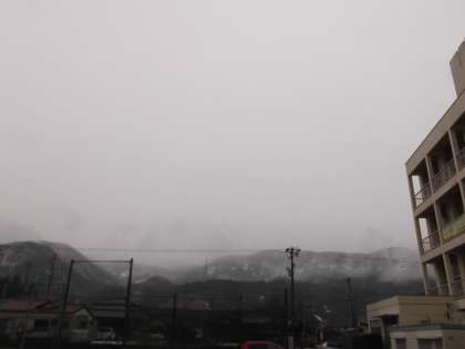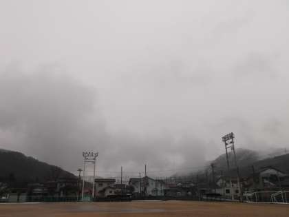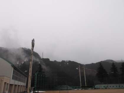 3月22日(火) 今朝の学校周辺の空の様子です。 山間から雲が沸き立つように出ています。