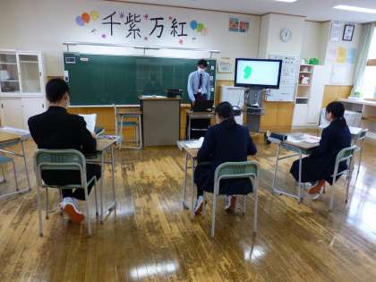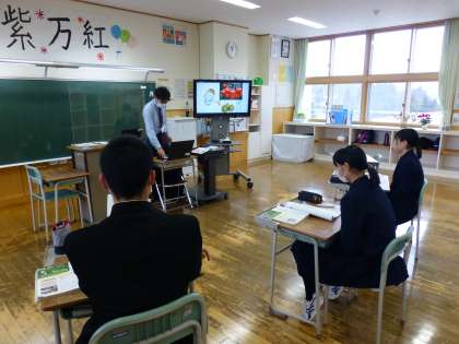 2年3限 社会 公開日 2022/03/22 更新日 2022/03/22 日々の活動から 3月22日(火) 2年生の社会の授業の様子です。 「東北地方」について学習しました。 モニターに地図が表示されると「山形県」 有名な農産物は?「さくらんぼ」等と答えていました。