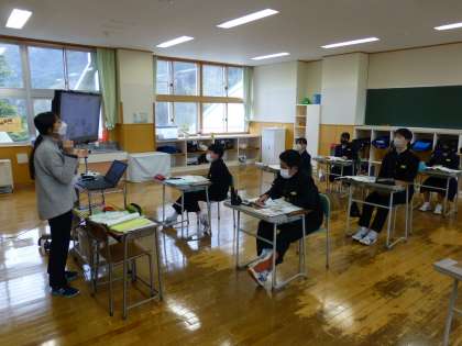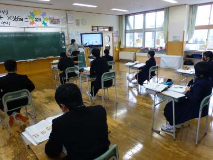 1年4限 英語 公開日 2022/03/22 更新日 2022/03/22 日々の活動から 3月22日(火) 1年生の英語の授業の様子です。 「City Light の結末はどうなるかな」という内容の授業でした。