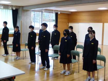 修了式の最後は、校歌斉唱です。 天池先生の伴奏で歌う校歌は、最後でした。