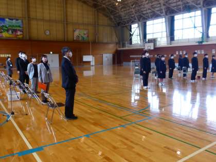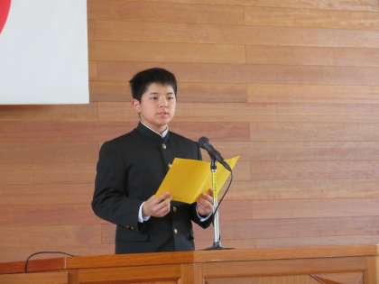 意見発表 始業式 公開日 2022/04/06 更新日 2022/04/06 日々の活動から 4月6日(水) 始業式に先立って、生徒代表が意見発表をしました。 例え話や臨場感のある内容でした。 校長が「中学校は大人になるための学校だと思っています。自分のよさ、お互いのよさを大切にしていきましょう。」と式辞を述べた後で、校歌を歌いました。