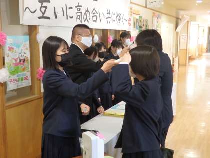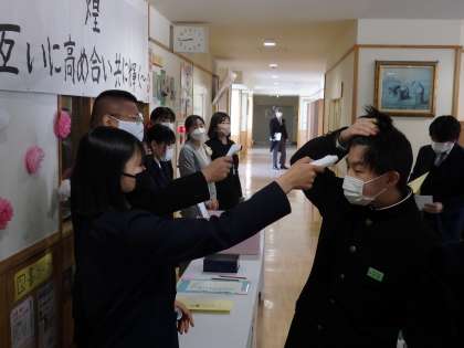 4月8日(金) 本日は好天のもとで入学式を挙行しました。 まず、受付で検温しました。