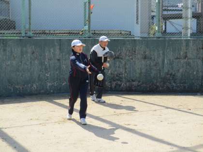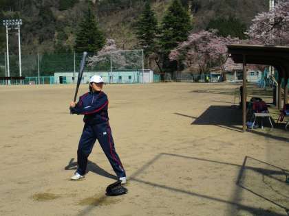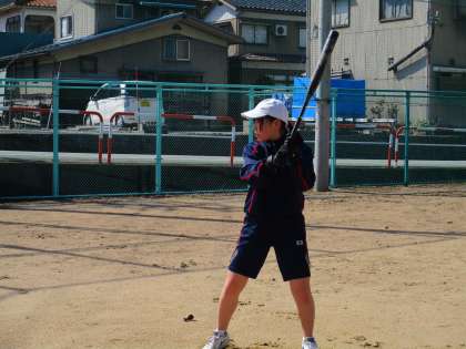 気持ちのよい天気の中で、のびのびと活動することができました。バッティング練習では、バットの芯に当てることを意識して練習しました。