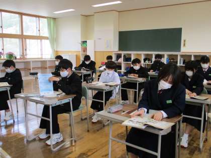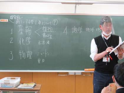 4月11日(月) 1年生の理科の授業の様子です。 今後の理科の学習のすすめ方について学んでいました。
