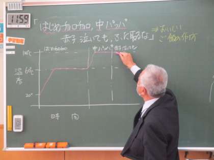 3年4限 技術科 公開日 2022/04/13 更新日 2022/04/13 日々の活動から 4月13日(水) 3年生の技術科の授業の様子です。 「はじめチョロチョロ 中パッパ 赤子泣いても フタ取るな」 ご飯のおいしいご飯の作り方 という内容の授業でした。 その後はどういう展開になったのでしょうか・・・